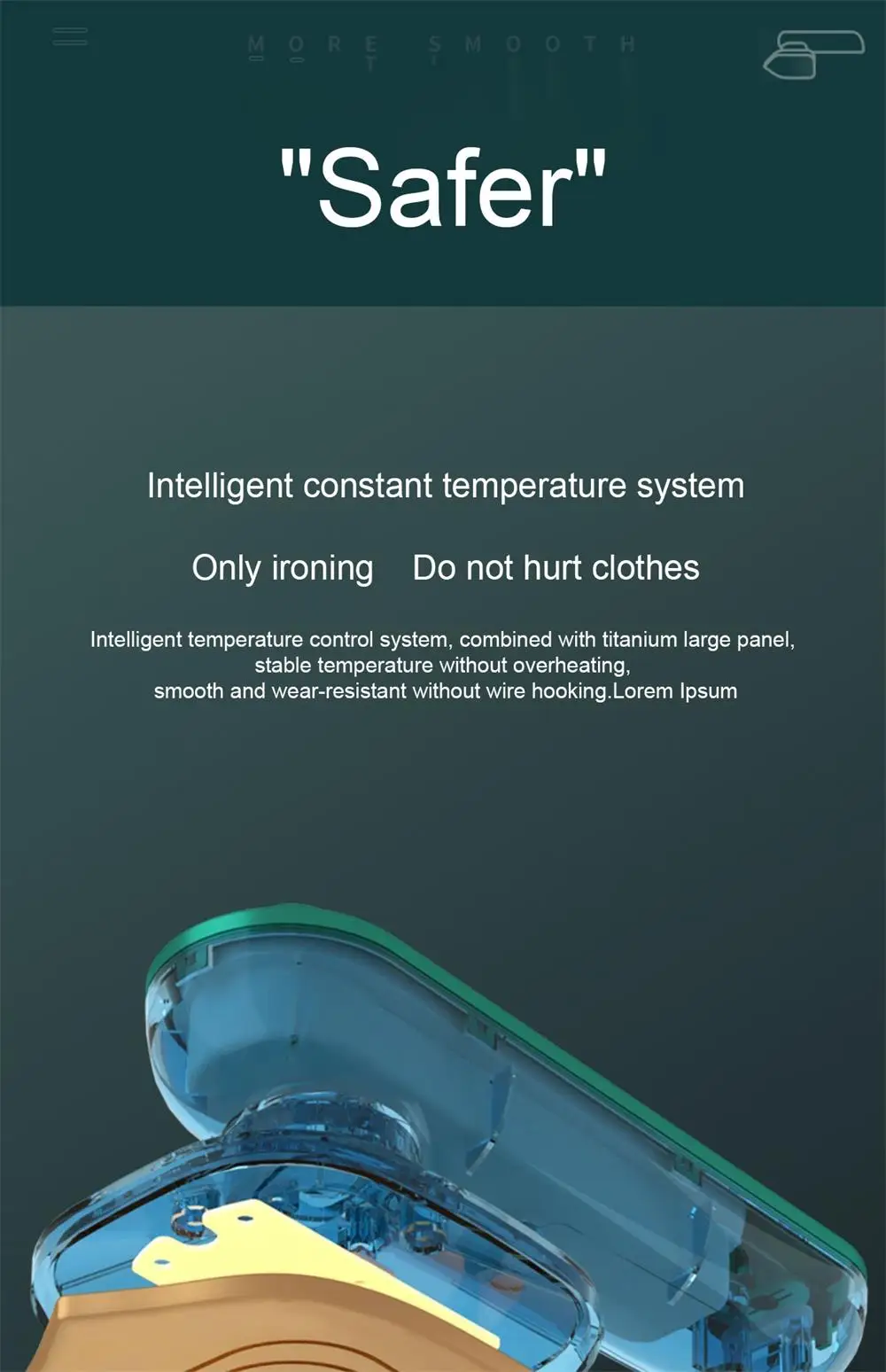 2: O ferro elétrico tem um tamanho relativamente pequeno e é adequado para uso doméstico. Pode ser colocado