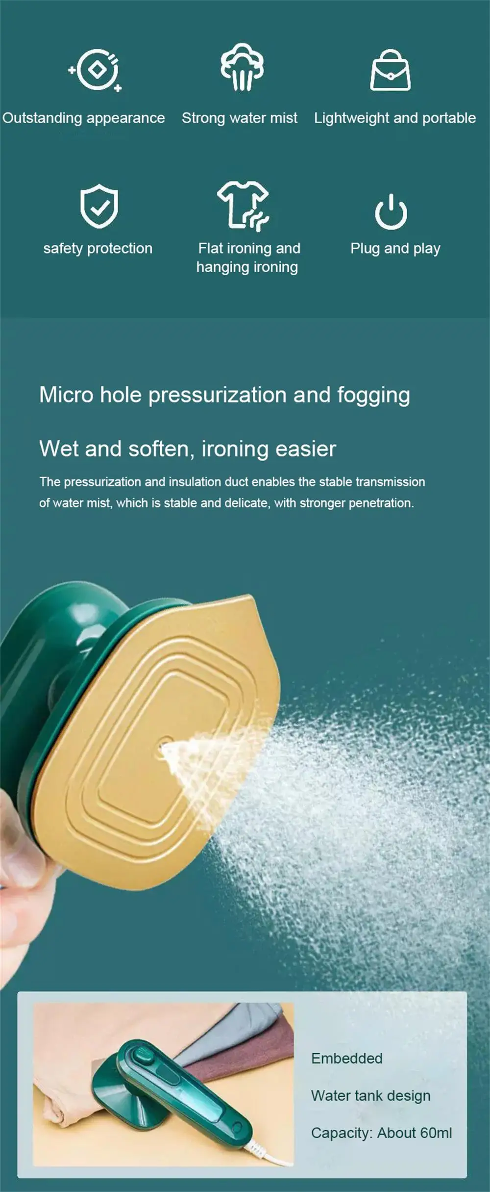 1: Vapor forte e penetração forte. Ao passar roupas, o vapor que emite tem uma forte força penetrante, tornando as roupas passadas muito planas